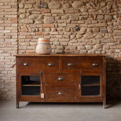 CREDENZA/VETRINA CON QUATTRO CASSETTONI E DUE ANTE IN LEGNO DI TEAK