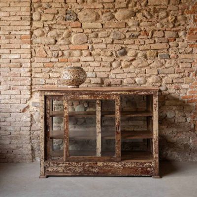 CREDENZA/VETRINA PANNA CON ANTE SCORREVOLI IN LEGNO DI TEAK