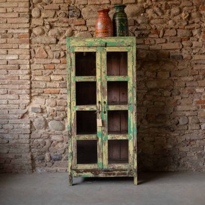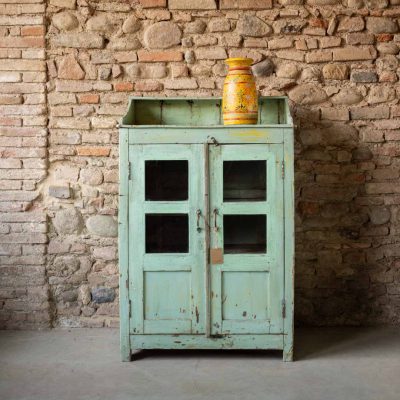 VETRINA DUE ANTE VERDE CHIARO IN LEGNO DI TEAK