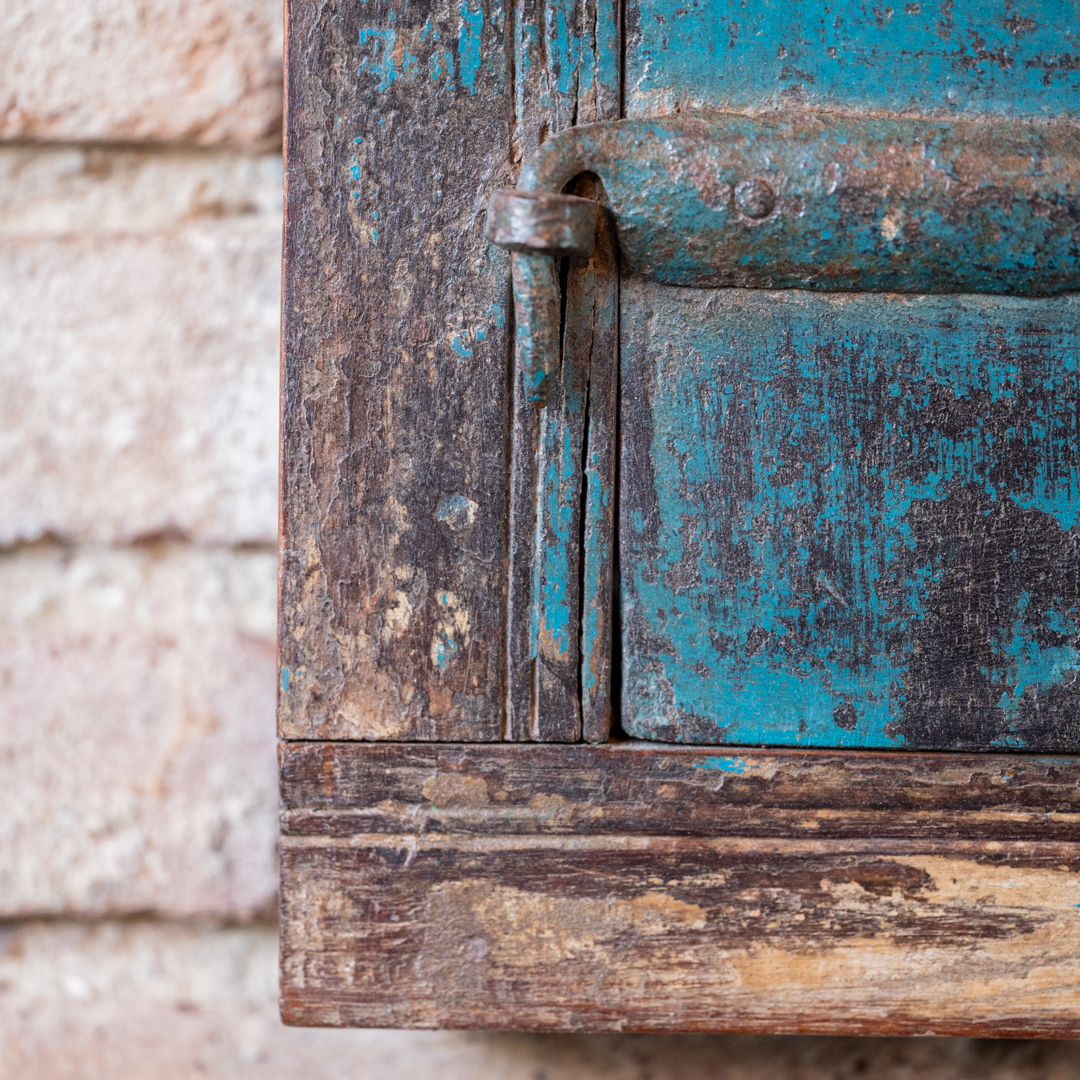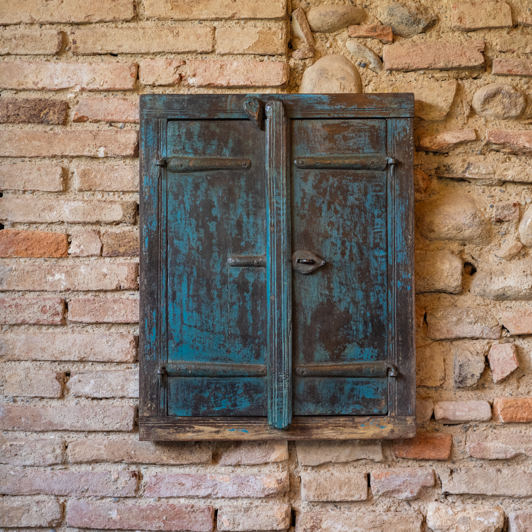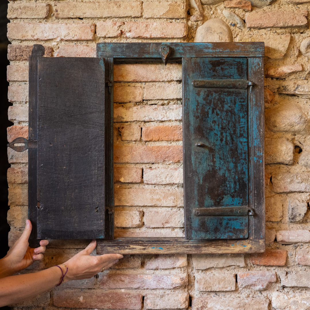 Finestrella indiana blu con due ante.