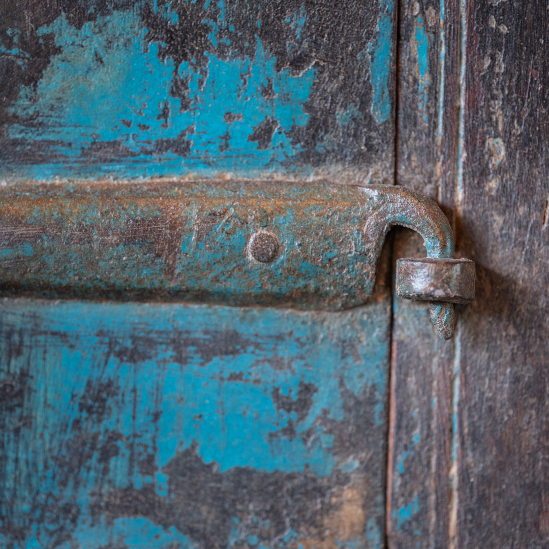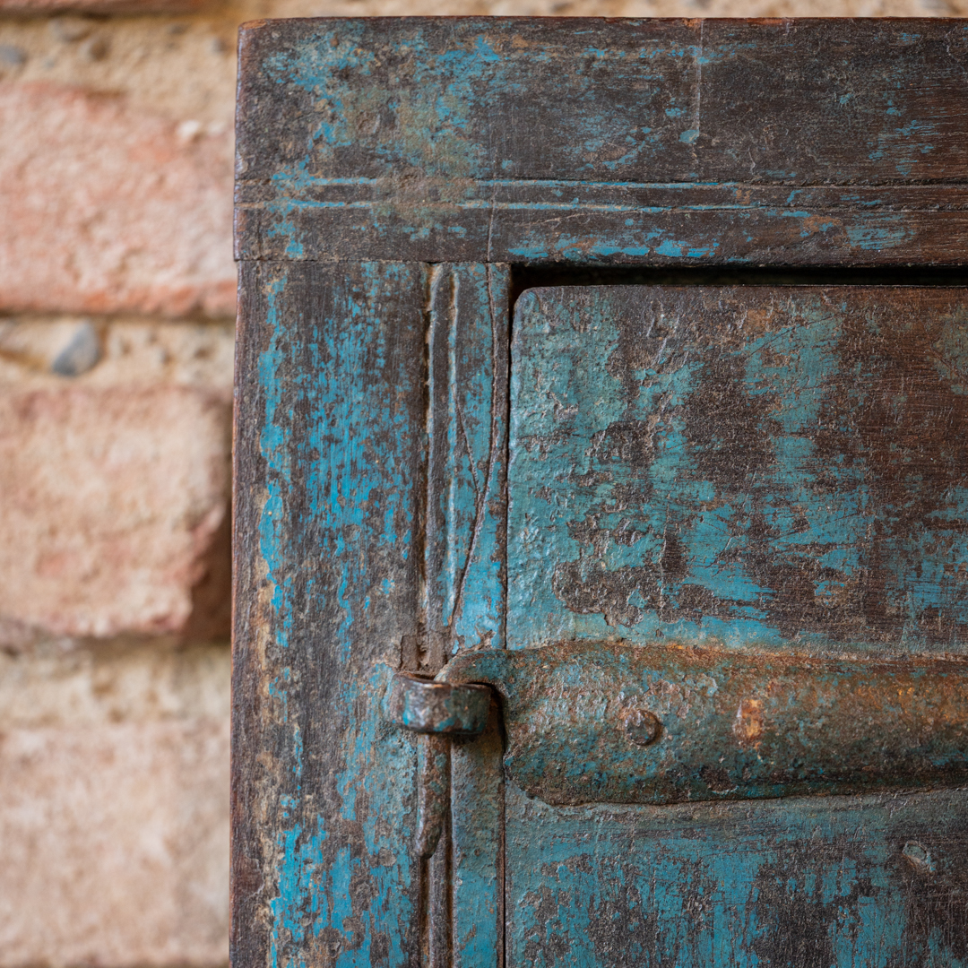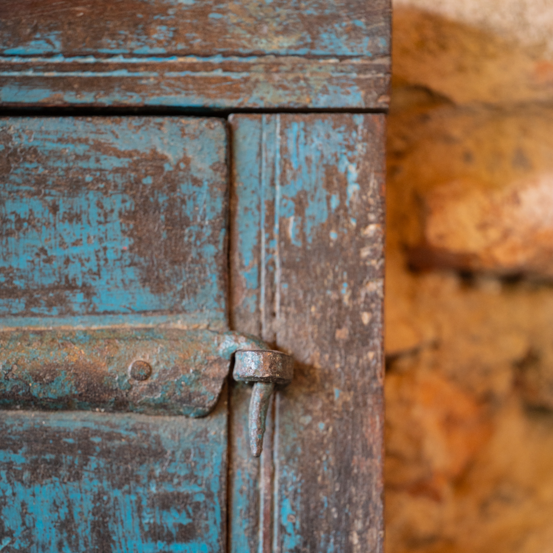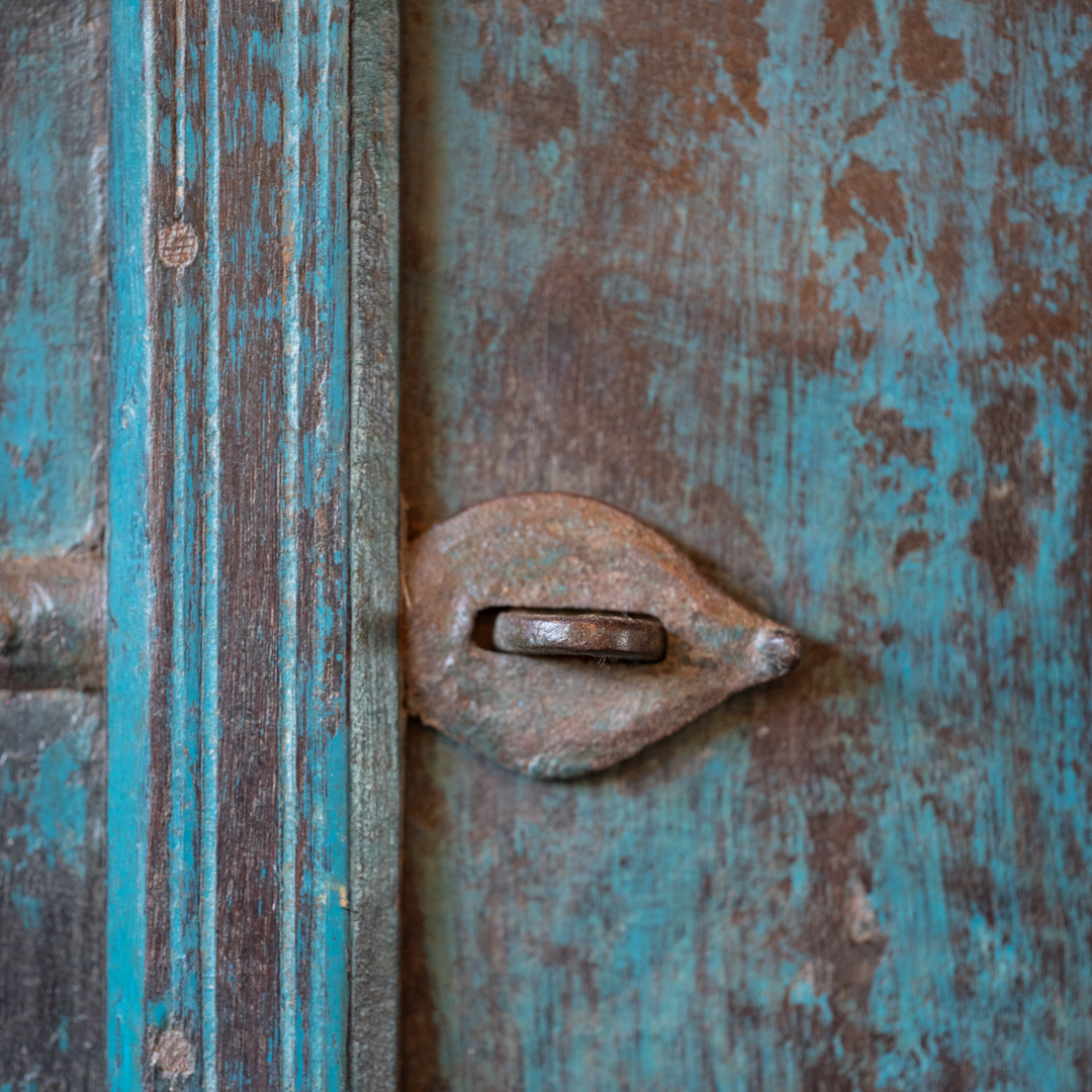 Finestrella indiana blu con due ante.